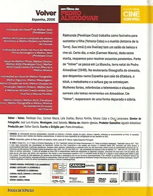 Coleção Folha Cine Europeu Vol. 06 - Volver, Pedro Almodóvar