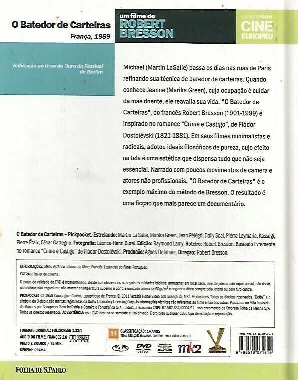 Coleção Folha Cine Europeu Vol. 11 - O Batedor de Carteiras, Robert Bresson